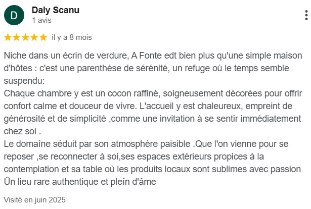Le Domaine A Fonte est situé à Prunelli-di-Fiumorbo, en Haute-Corse, dans un cadre naturel préservé entre mer et montagne.